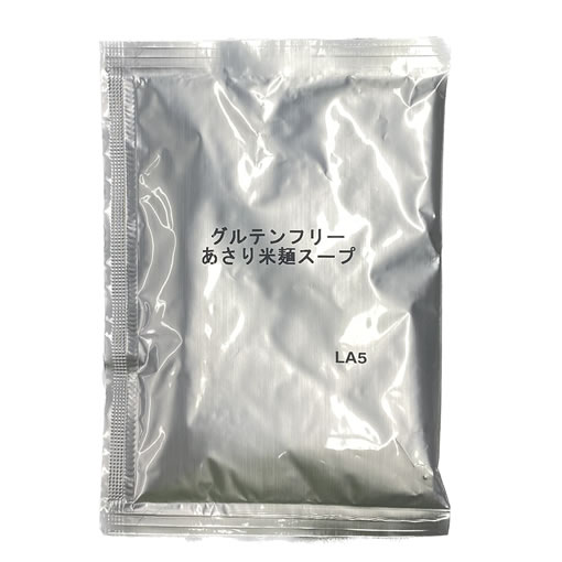 グルテンフリー あさり米麺スープ(希釈用)。召上がり方:スープは300mlの熱湯または鳥ガラスープで溶いておき、湯切りした麺を入れてお召し上がりください。●名称:ラーメンスープ (希釈用)●原材料名:【あさりスープ】食塩、チキンエキス、清酒、植物油脂、あさりエキス、砂糖、しょうがペースト、にんにくペースト、香辛料/調味料(アミノ酸等)、トレハロース、増粘剤(キサンタンガム)、(一部に大豆・鶏肉に含む)●内容量:1人前(スープ36g)x10袋●賞味期限:表示面上部 ●保存方法:直射日光、高温多湿を避けて保存してください。●調理方法:下部表記